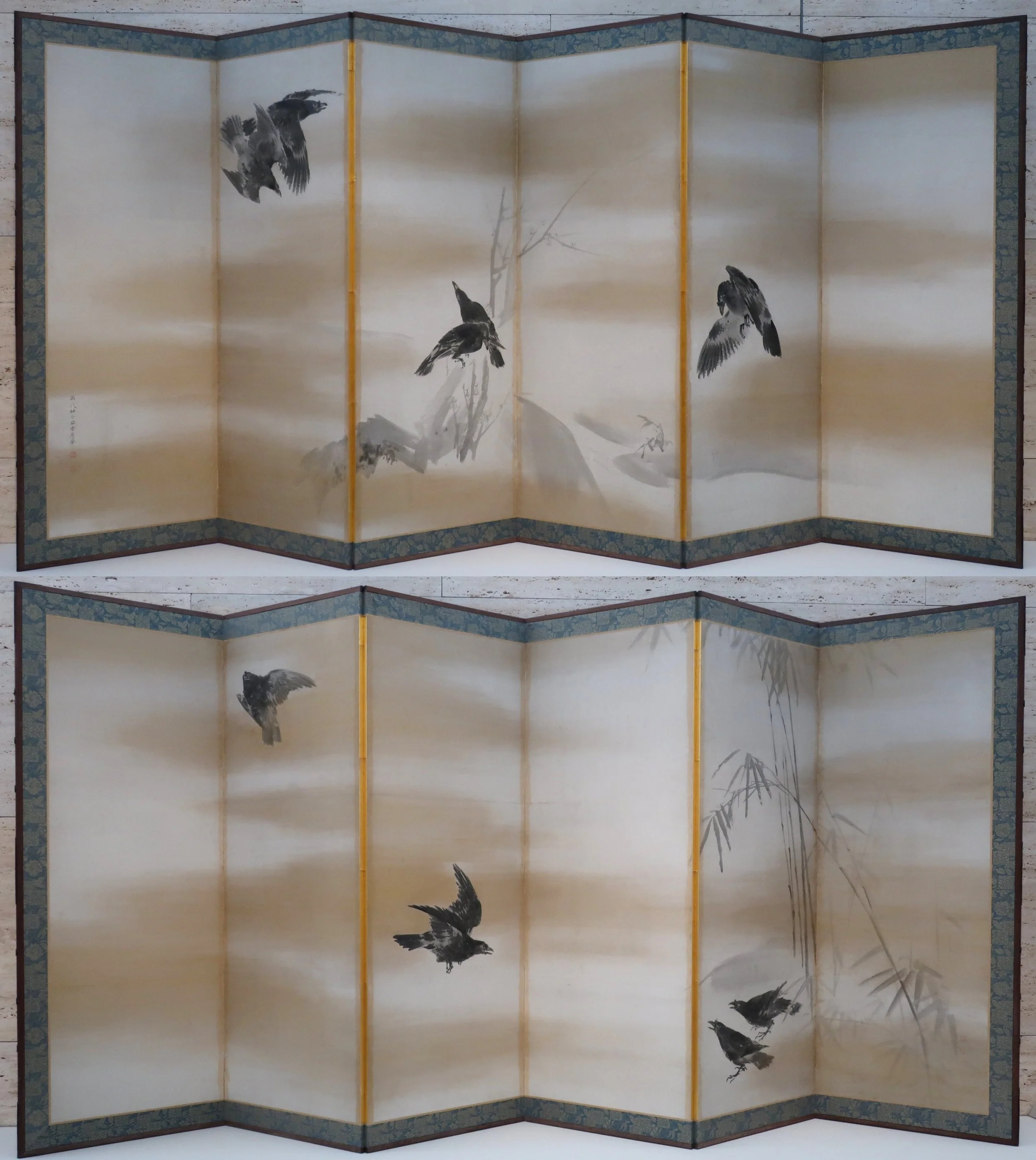 Maruyama Ōkyo, Vrány, 1766, inkoust a zlato na papíře, paraván, Muzeum umění Kimbell.