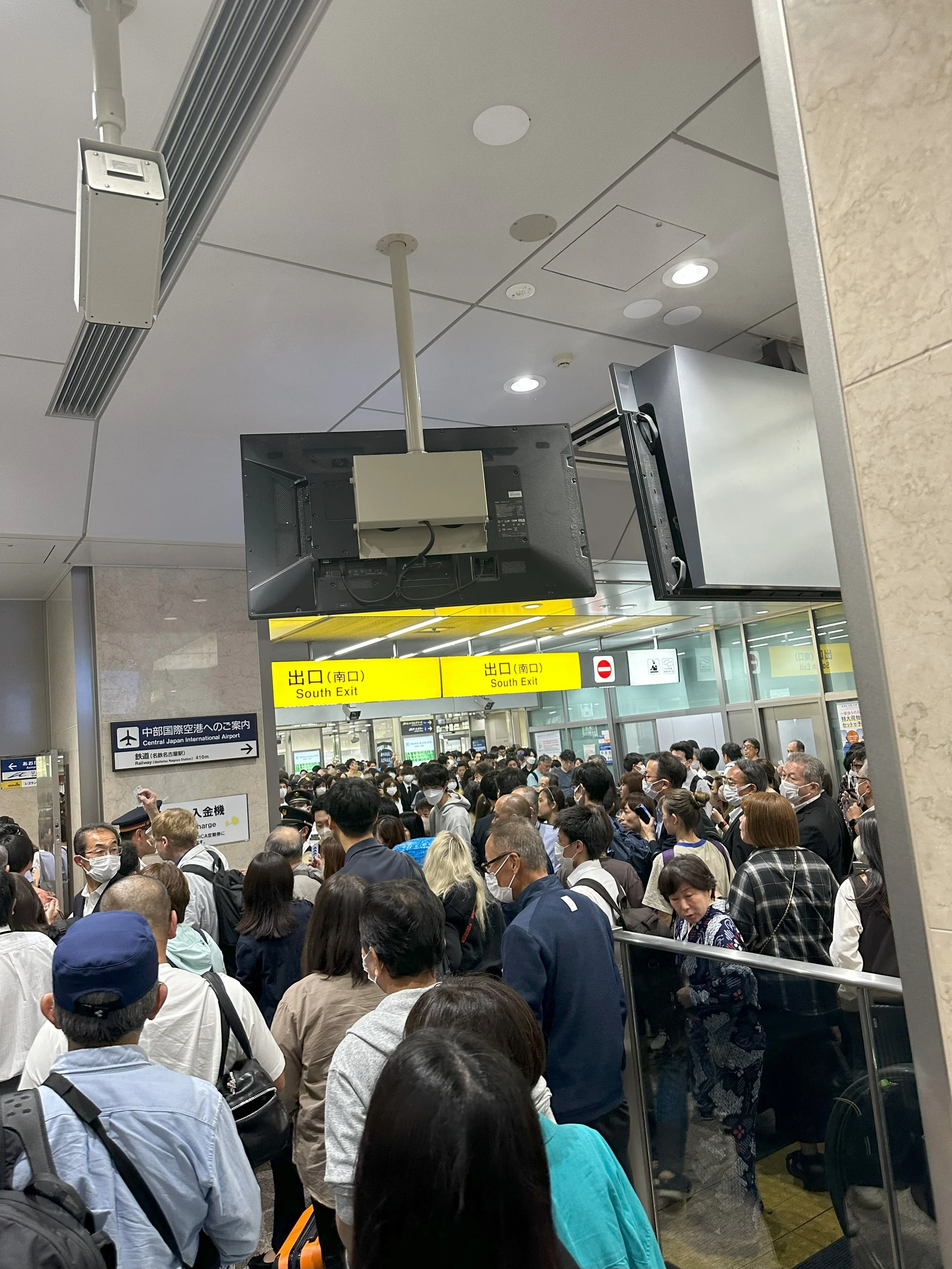 Další den ráno jsme radši s předstihem dorazili na nádraží, kde nám ovšem oznámili, že vlaky stále nejezdí. Přes noc ale stihli opravit koleje vedoucí do města Nagoya 名古屋 a prý bude vypraven jeden vlak každou hodinu. A tak jsme se rozhodli chopit příležitost za pačesy. Bez dlouhého váhání jsme vyměnili naše jízdenky za místenky na odpolední spoj Nagoya-Tokyo a vypravili jsme se do města, které rozhodně nebylo na programu.