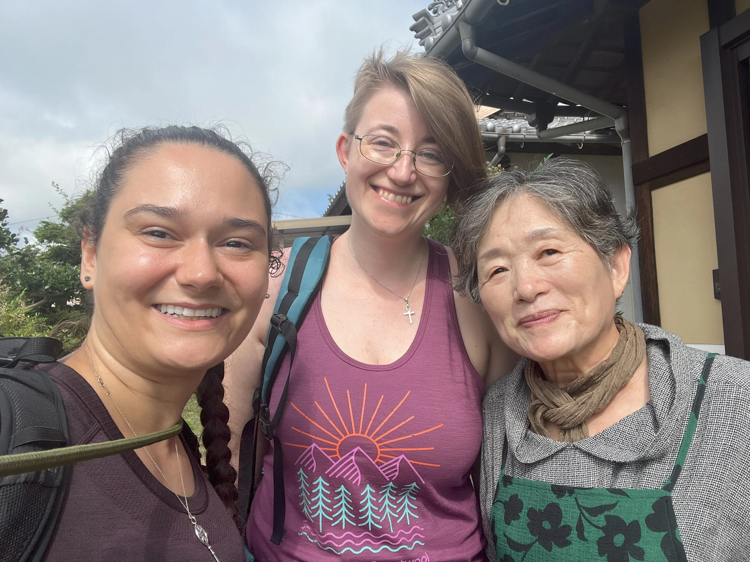 Fotka s paní, která nás ubytovala u sebe doma na ostrově Ōmishima大三島, červenec 2023.