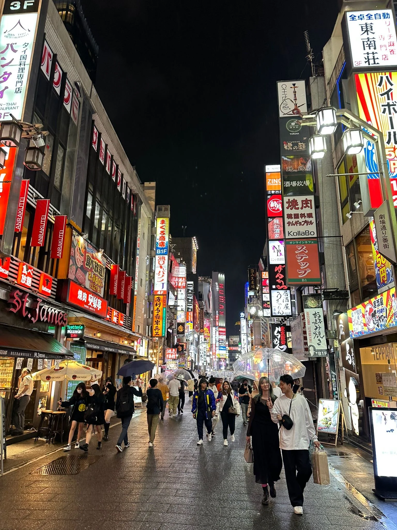 Noční Shinjuku 新宿 s typickými pestrobarevnými neony