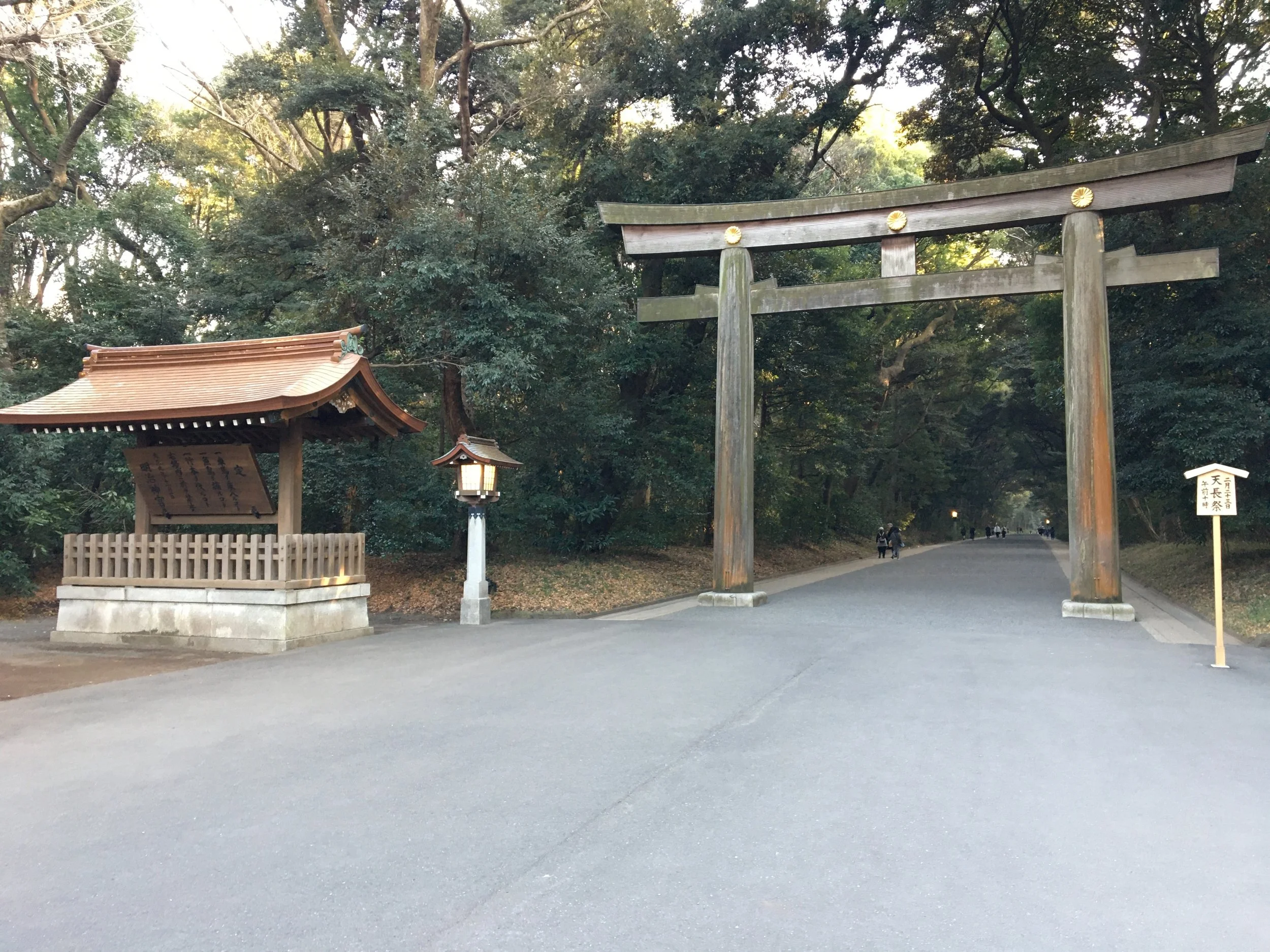 Vstup do šintó svatyně Meiji jingu 明治神宮 nacházejíce se hned vedle rušné módní čtvrti Harajuku 原宿